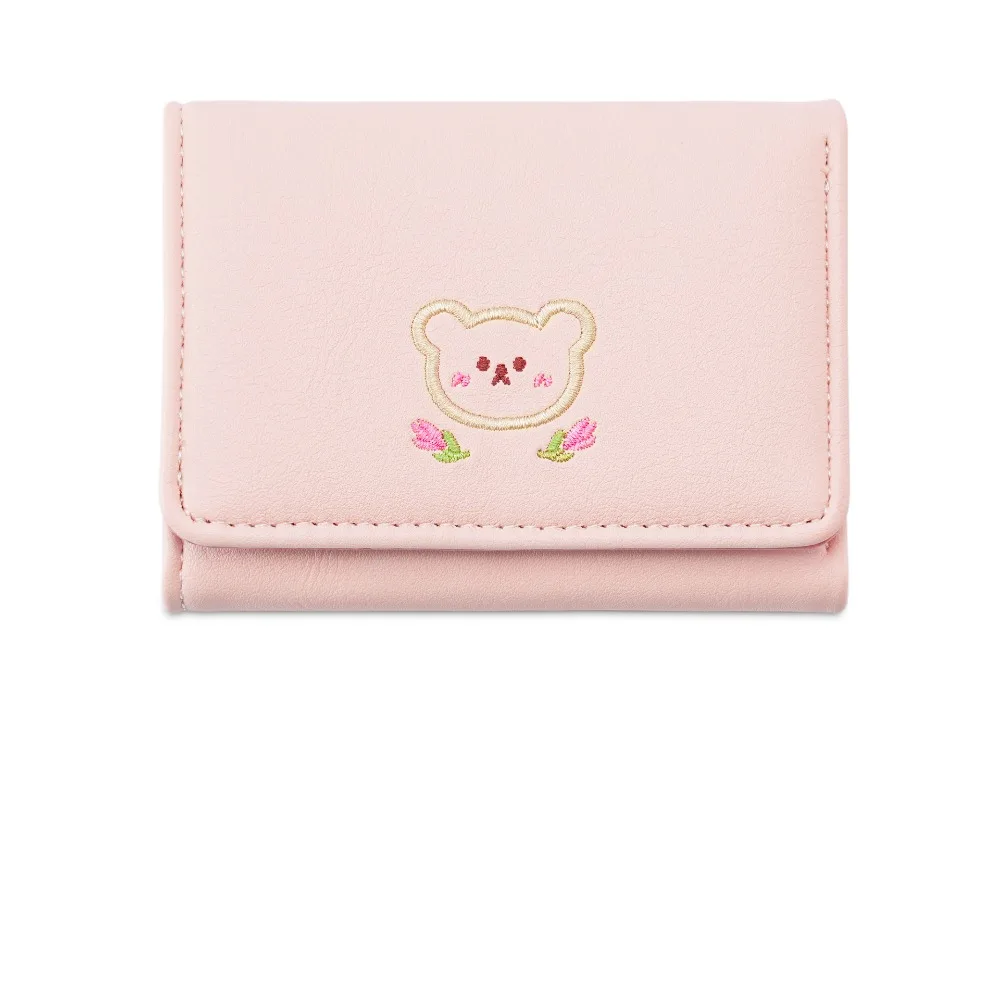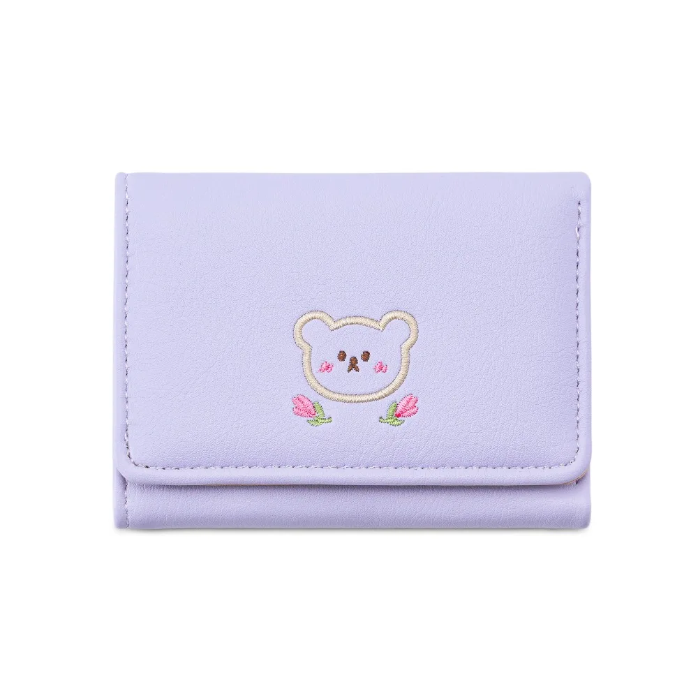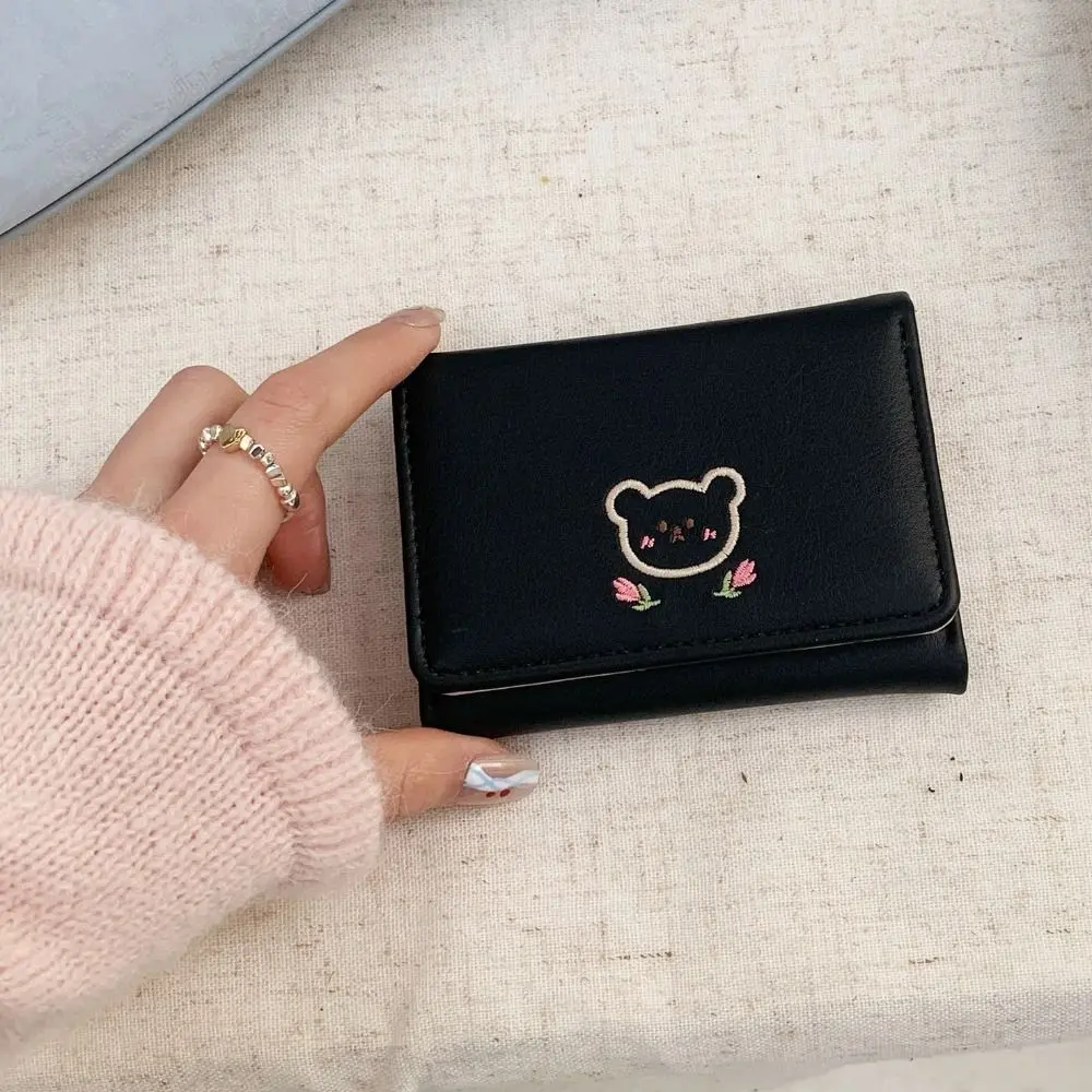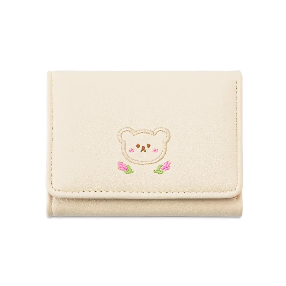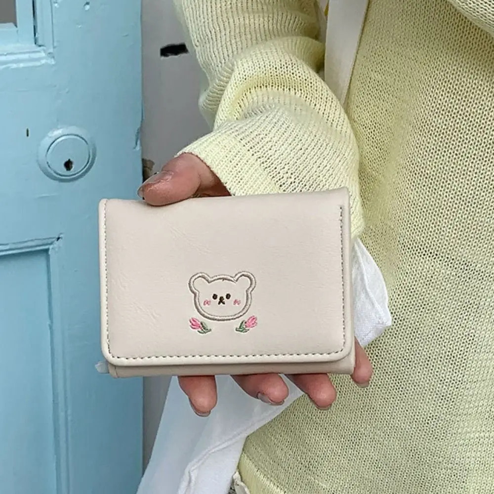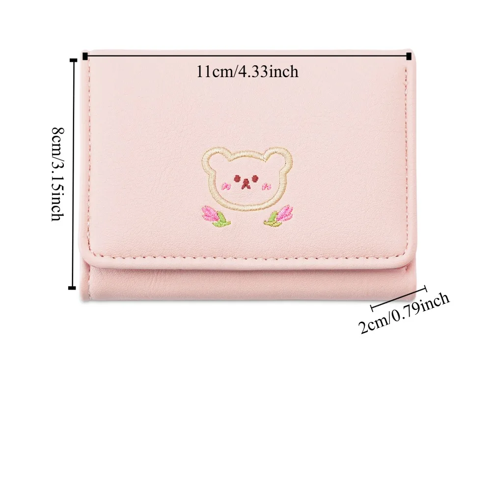 Pouch Kawaii Cute Tri-Fold Purses Portable Multiple Card Slot Bear Short Wallet Candy Color PU Leather Coin Purse Student